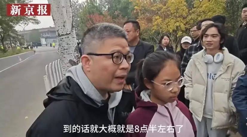小姑娘戴着厚厚的眼镜,穿着冲锋衣、神情很肃穆。父亲的眉眼里带着悲痛和不舍,大家不惧寒风、都等在外面。