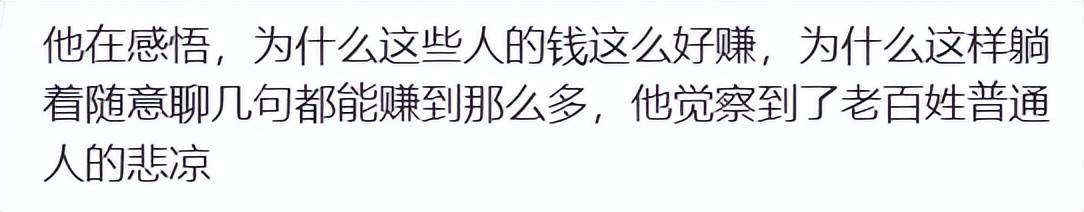 “他在感悟,为什么这些人的钱这么好赚,为什么这样躺着随意聊几句都能赚到那么多,他觉察到了老百姓普通人的悲凉。”
