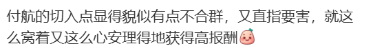 作为艺人,付航现在赚钱的轻松程度已经远超过去的打工经历,但他毕竟是从草根发迹,而且才成名没有多久,思维更接近普通打工人。