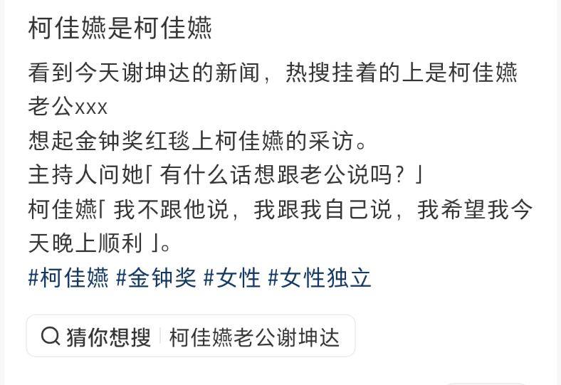 不过柯佳嬿自己似乎早有预感,在金钟奖颁奖典礼上,她提前用一句漂亮话,和坤达划清界限,暗示他是他,自己是自己。