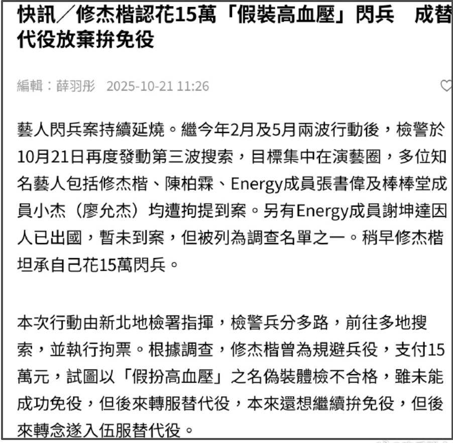 最近,多位台湾男星因为逃兵役被抓,事态似乎还挺严重,都被戴上了手铐。