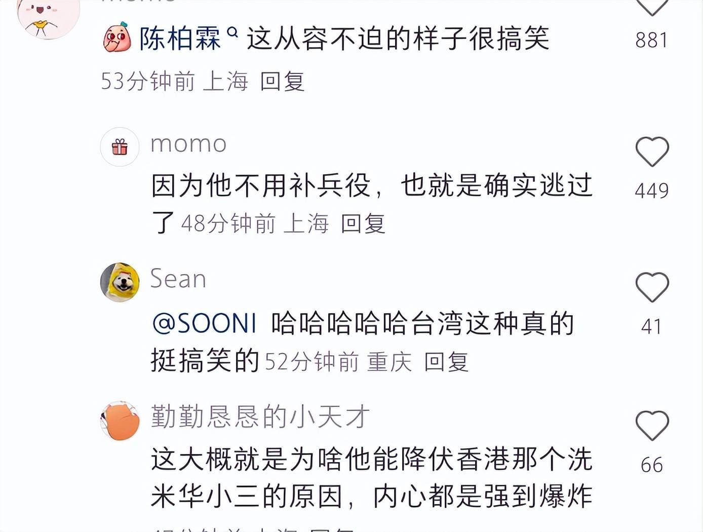 他之所以还能这样嬉皮笑脸,有台湾网友直言,是因为他最终还是逃过了兵役。