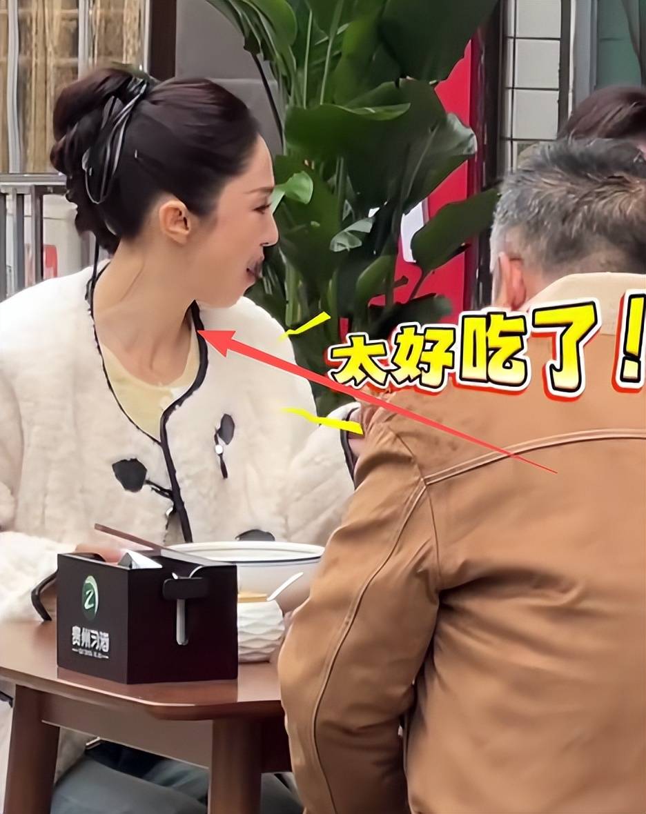 可能是觉得筷子上沾着汤汁可惜,她下意识地把筷子放到嘴边舔了一下,这个小动作刚好被镜头拍个正着。
