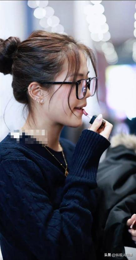 在机场,她还当众拿出了口红,对着镜子补妆,这松弛感,真是一般人学不来的。