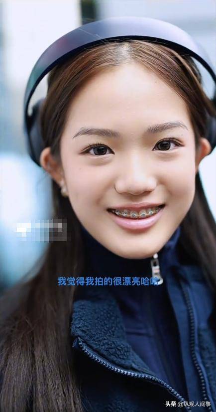 面对怼脸的镜头,她丝毫不掩饰、也完全不躲闪,而是大方的亮出自己的牙套。