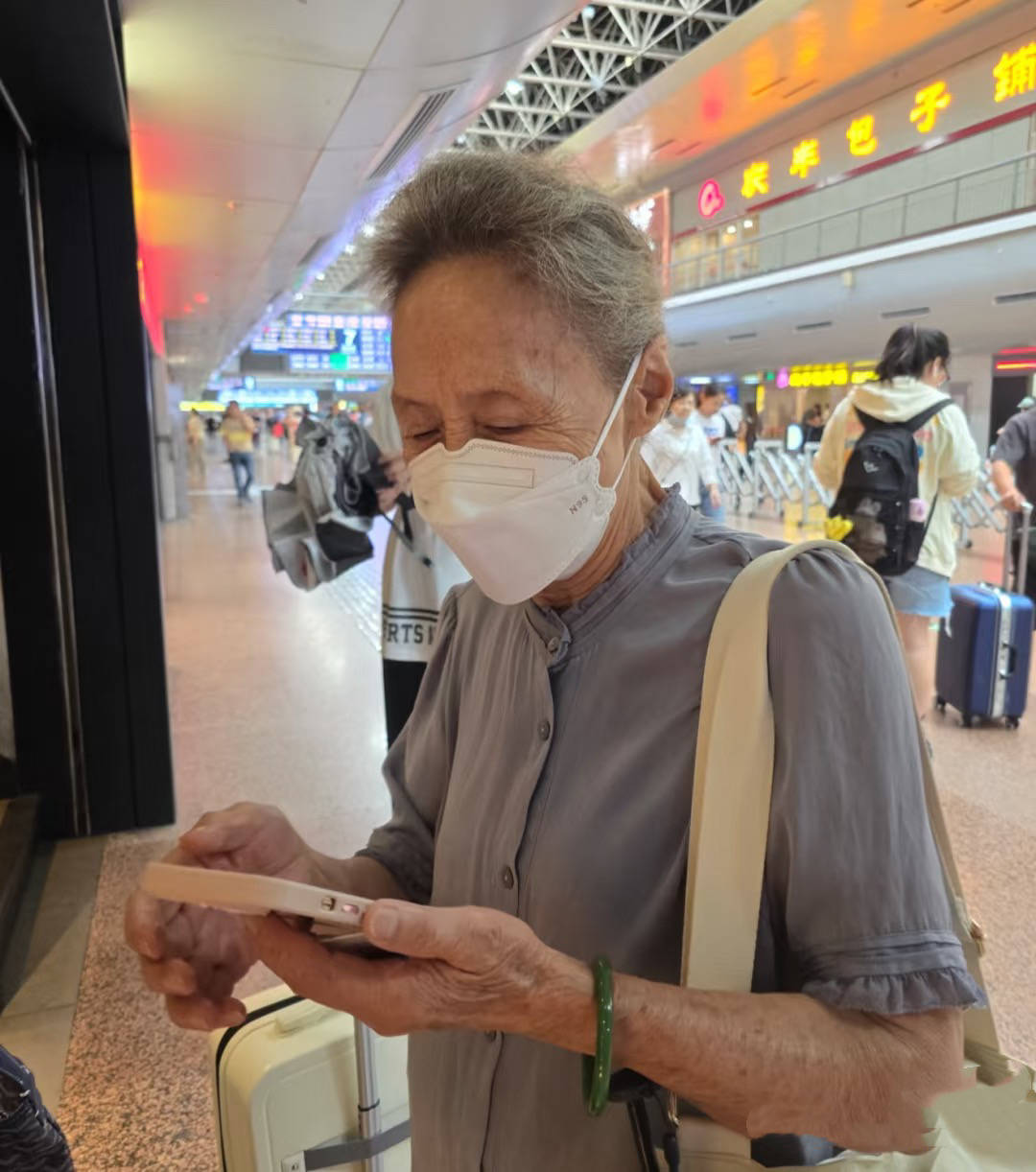 吴彦姝87岁了,生活上却能跟得上潮流。不仅能一个人推着行李箱赶行程,还能在机场、高铁站买东西。