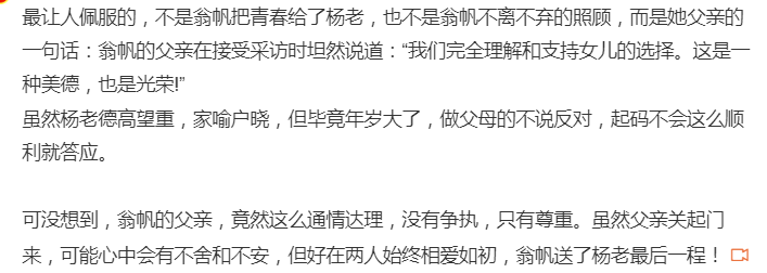 还记得小时候常常看到关于这段老少恋的各种恶意揣测,但近年已经越来越少了。可能要归功于时代的发展,慢慢才会有更多人愿意尊重杨老和翁帆女士吧。