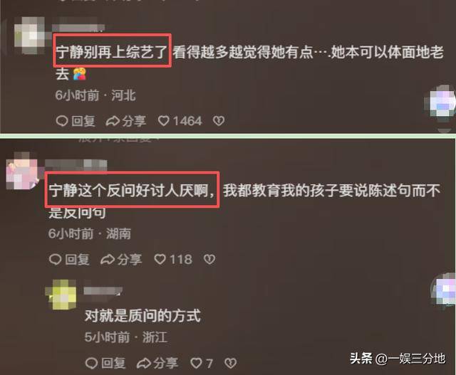 难怪网友辣评道:“宁静别再上综艺了,看得越多越觉得她有点....,本可以体面的老去。”