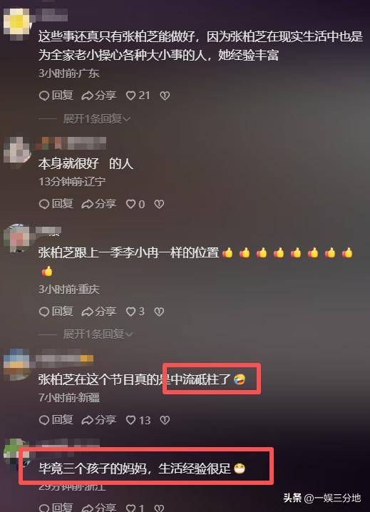 人家热评道:“张柏芝人很好,跟上一季的李小冉一样,是中流砥柱。”