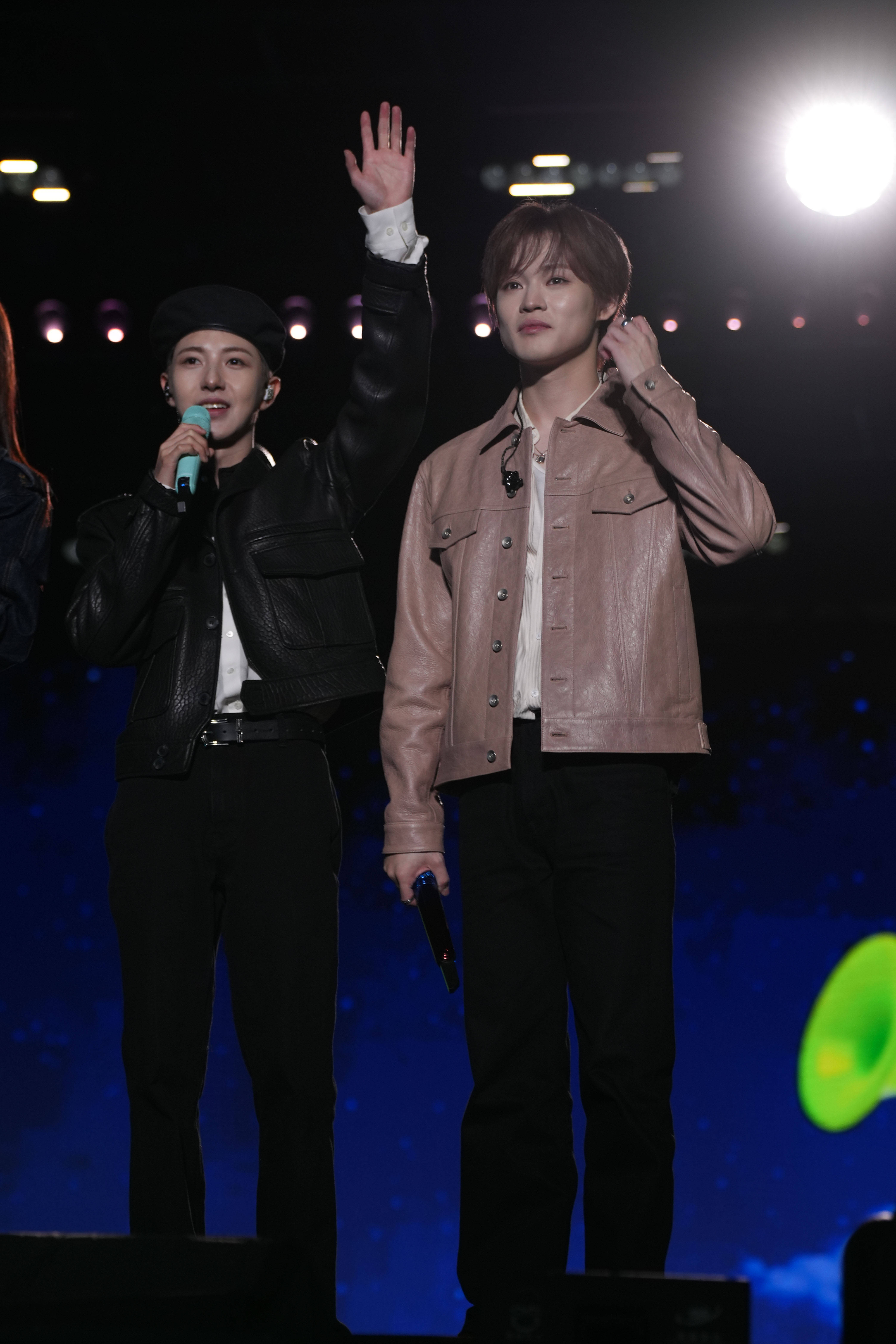 现场,R.E.D女团带来《三彩》《Game Over》《A.O.1.G》等歌曲,活力唱跳,青春飞扬;黄仁俊、钟辰乐则是诠释了《Beatbox》《告白气球》等歌曲,两人超默契,控场绝佳;卓沅一连演唱了《果敢》《凌晨三点半》《谎言》等,又帅又酷,台风超稳;刘宪华压轴亮相,携《TRAP》《全是爱》《太久》《It's You》等前来炸场,自弹自唱,气氛嗨炸。