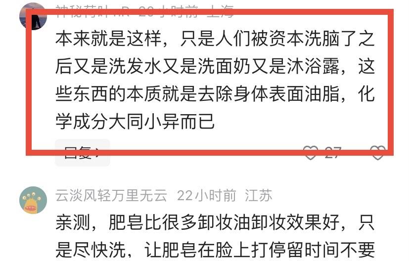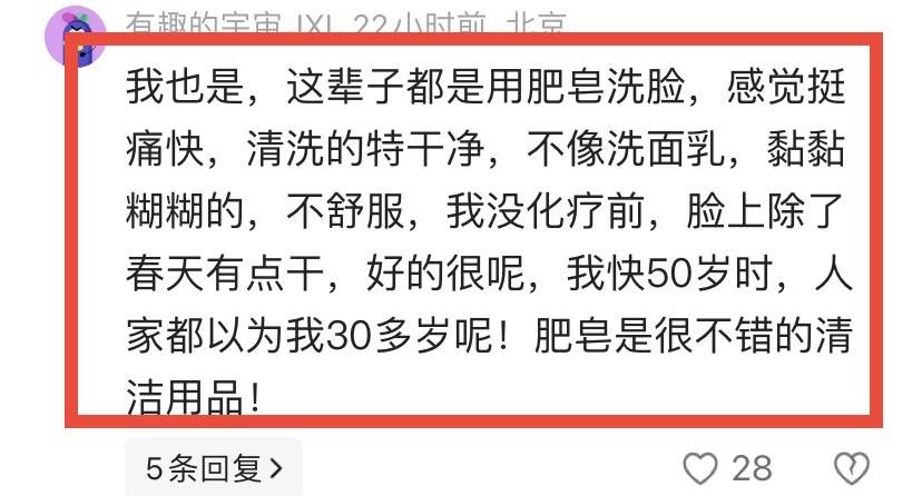 也有网友表示,这辈子都是用肥皂洗脸的,挺痛快、清洗的也干净舒服,不像洗面奶黏黏糊糊的。