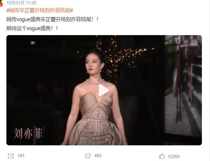 再加上前几天,刘亦菲压轴、辛芷蕾开场的消息传得满天飞,杂志方都没有回应或辟谣,让网友觉得,刘亦菲压轴已经是铁板钉钉上的事。