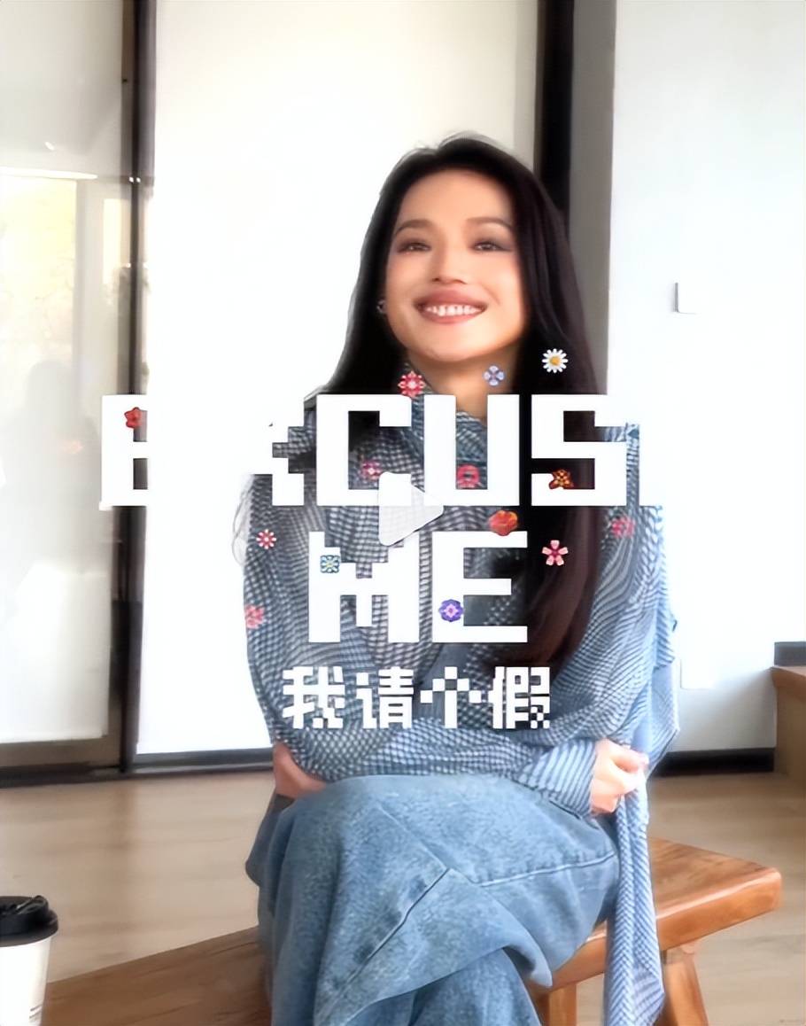 她请假也请得很松弛,说完后还对着镜头咧嘴一笑。