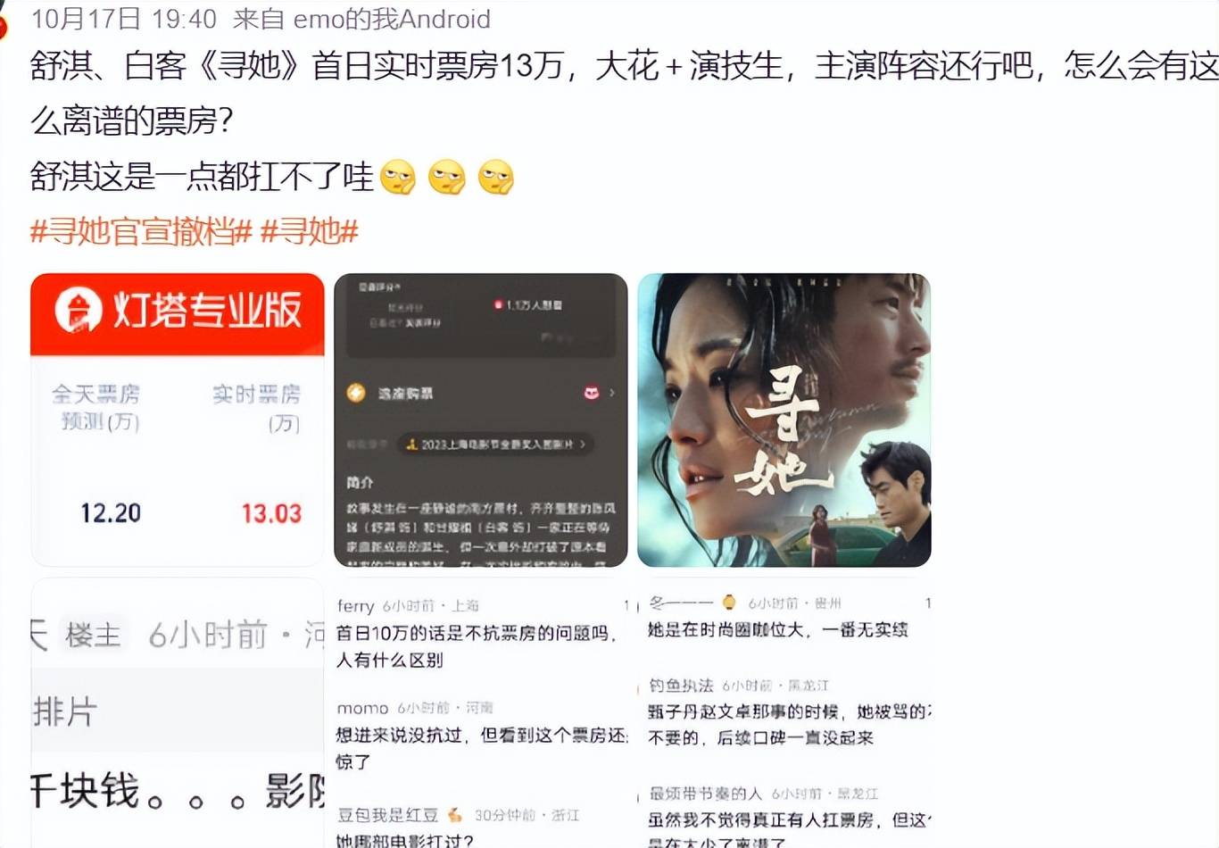 今年在韩国釜山电影节拿下导演奖,让她扬眉吐气了一把,可她回归演员身份,演的一部《寻她》,刚上映就血扑,日票房不到20万,只好匆匆撤档下映。