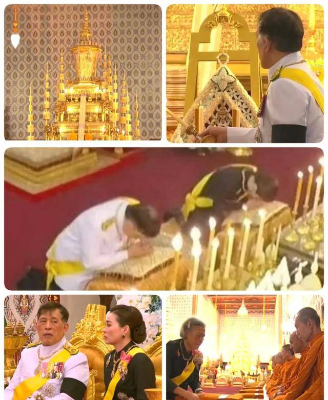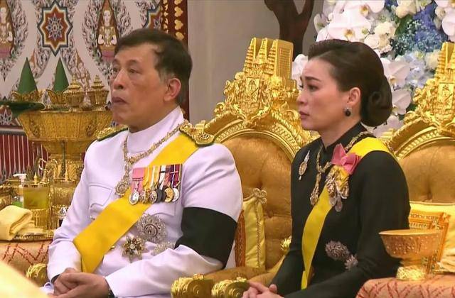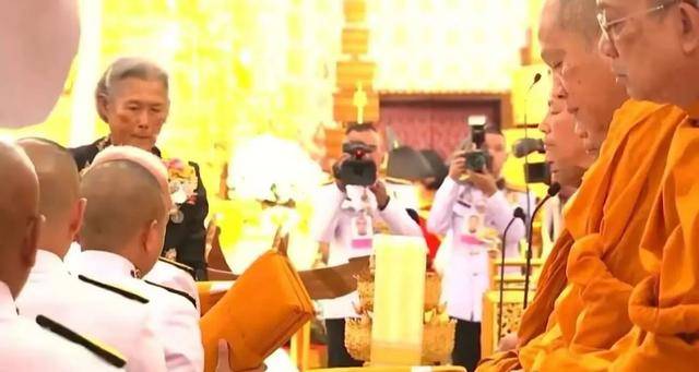最受关注的是国王和王后。玛哈和苏提达坐在一起,73岁的玛哈肉眼可见苍老了不少,双鬓斑白,一夜之间沧桑不少,毕竟母亲去世对他影响极大,四个子女,普密蓬最疼爱诗琳通公主,而诗丽吉最爱玛哈,母亲离开,他最难过。