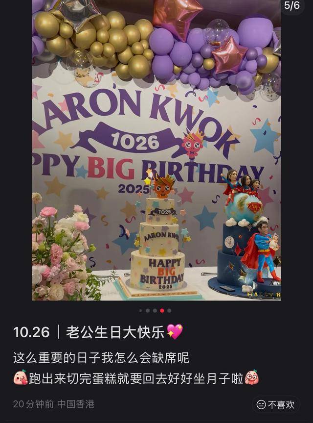 10月26日,郭富城迎来了自己60岁生日!这个生日,对郭天王来说是双喜临门,前不久他刚刚迎来自己第三个女儿,又再一次当爸爸,现在又过60大寿,可谓是老当益壮,福气满满。方媛一如往常,发