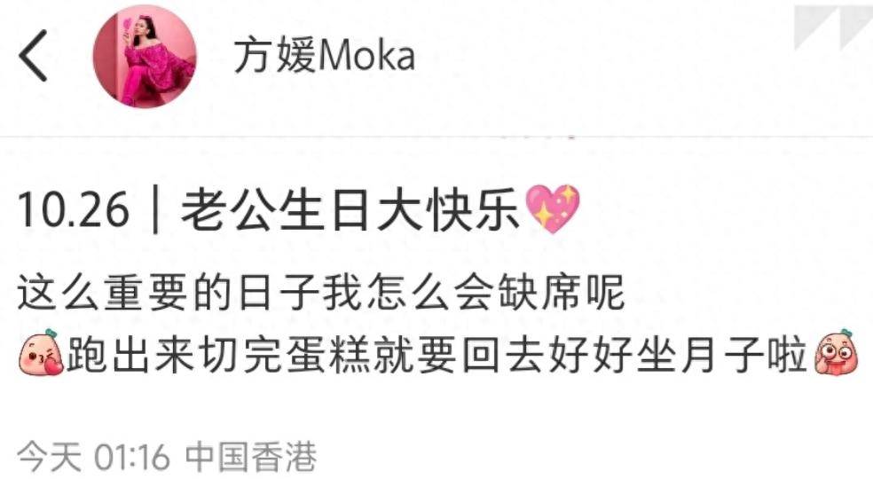 方媛自己也发文说, 这么重要的日子怎么能缺席, 还说切完蛋糕就回去好好坐月子, 心情看着特别好,