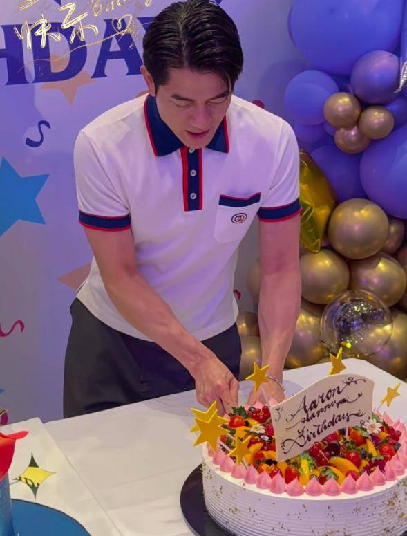 话说郭富城真的60了吗, 看他切蛋糕的样子, 头发梳得油亮, 精神好得很, 哪像爷爷辈, 他这个状态保持得绝了, 整个生日会也搞得很年轻, 现场全是那种紫色金色的气球, 根本没弄那些传统寿桃, 就跟小年轻开派对一样,