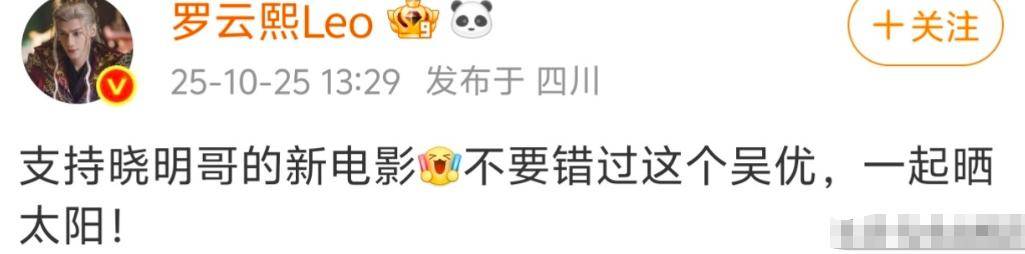 就一个新电影,《阳光俱乐部》, 刚上, 昨天今天, 你去看他那个微博底下, 好家伙, 那排面, 简直是来“团建”了, 肖战, 刘亦菲, 赵丽颖, 杨紫, 王俊凯, 周冬雨, 檀健次, 贾乃亮, 全是名字响当当的, 都跑来给他转发打call, 这阵仗, 说实话, 现在电影圈, 真没几个人能有,