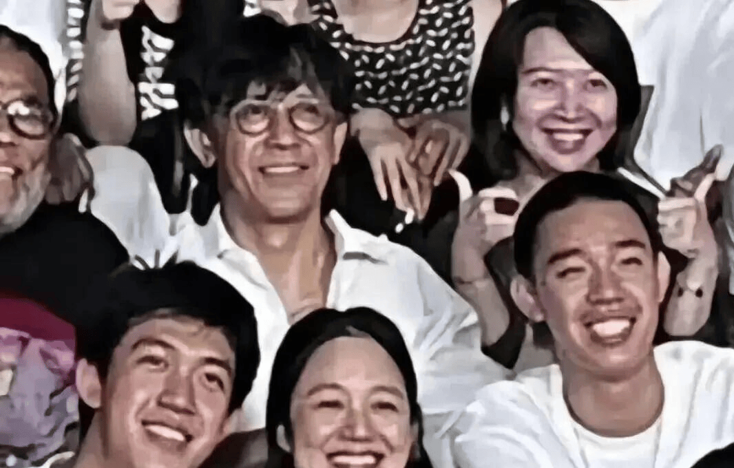 但你看她在《英雄出少年》杀青现场的照片——大儿子亲密地搂着她的肩膀,丈夫在身后默默守护,小儿子乖巧地站在旁边。