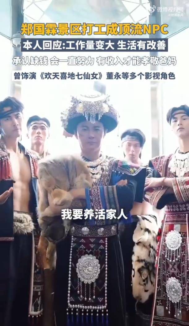 据10月26日报道,“郑国霖承认缺钱但会努力”的消息意外刷屏。这位曾凭《隋唐英雄传》李世民等角色惊艳观众的演员,如今身穿古装、手持道具,成了景区里被游客围堵的“顶流NPC”。面对热议,他淡定回应:“工作量变大了,生活肯定有改善。”