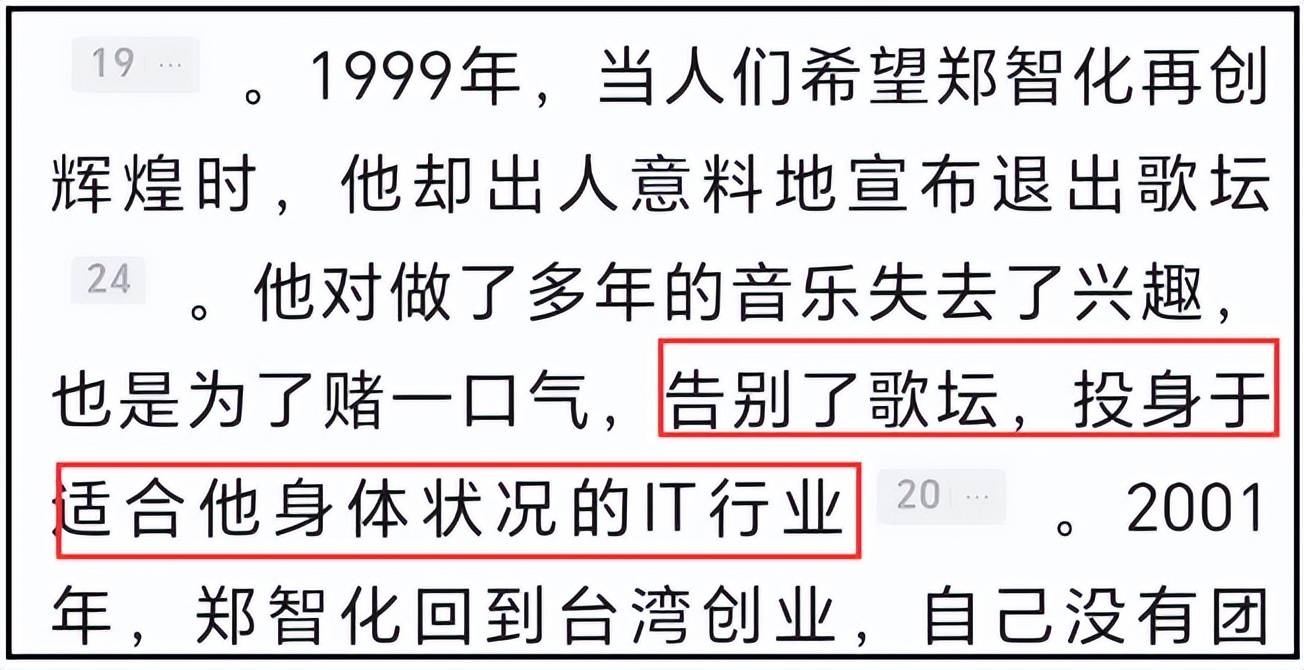 郑智化作为残障歌手,早年确实凭借《水手》、《星星点灯》等作品在两岸三地走红。1999年,郑智化选择退出歌坛,投身IT界创业,最后失败告终。