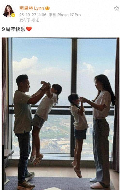 熊黛林发照片 庆祝结婚9周年, 配文 很简单, 就一句“9周年快乐”, 信息量 真的挺大的,
