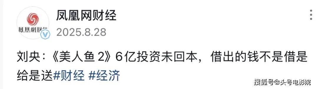 8月,投资人刘央自曝她为周星驰《美人鱼2》投入6亿,至今毫无动静。6亿资金被套牢,光按年化5%算,7年利息就约2.1亿。