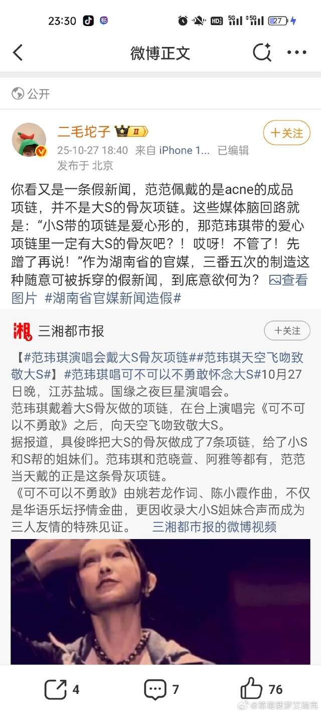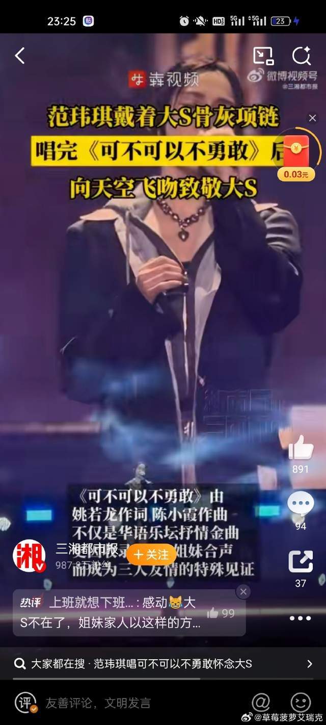 10月27日,范玮琪在江苏盐城的一场演唱会上,用一曲《可不可以不勇敢》和一个深情的天空飞吻,为逝去的好友大S送上了自己的悼念。这一幕迅速冲上热搜,但随之而来的,却是一场关于一条项链的“骨灰级”乌龙。