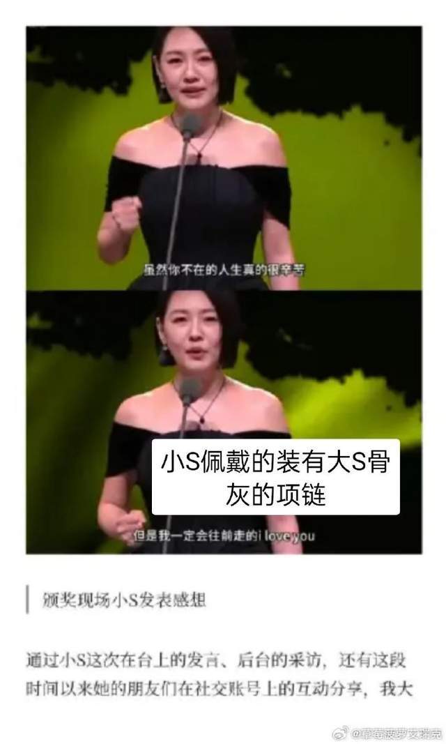 真正的“骨灰项链”确有其事,但主人是小S。她在2025年10月的金钟奖后台亲口承认,自己佩戴的黑色心形项链里装有大S的部分骨灰,不过,她并未公开这份沉重礼物的具体分配名单。