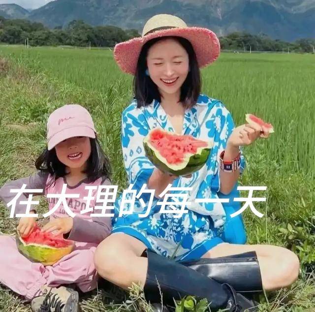 她在乡下亲自种菜、扎染、与女儿徒手掰开西瓜,在田野上独自弹着吉他唱歌,回归大自然享受惬意时光。