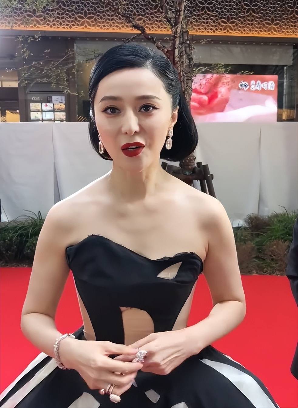 有网友翻出她前几年穿龙袍走红毯的旧照,那时她腰肢丰腴眼神凌厉,现在这身黑白复古礼服虽然气场还在,可干瘪的脸颊怎么看都透着憔悴。