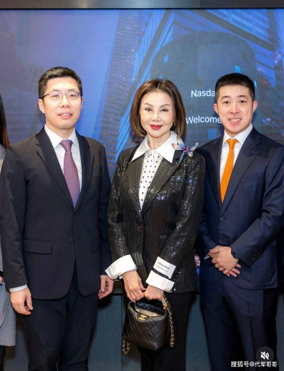 敲钟仪式开始前,谢玲玲身着一身黑色亮面西装外套搭配长裤,脚蹬高跟鞋,整个人显得气场十足。她与公司的核心管理团队、战略合作伙伴以及其他投资人一起合影留念,脸上洋溢着自信和喜悦的笑容。在现场,她的站位十分显眼,紧紧站在公司主席的身边,这足以显示出她在公司中的重要地位 。