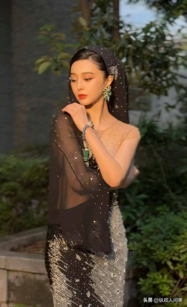 可能是已经在东南亚等国呆的太久的缘故,范冰冰的第二套服饰不仅美,还美的很有特色,镶着碎钻的头巾遮住了发型,愈发凸显她的五官。