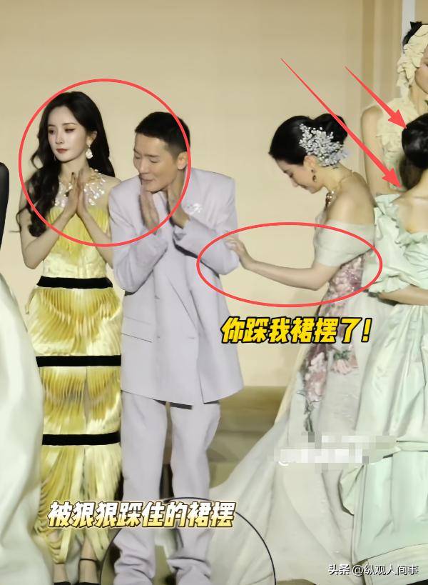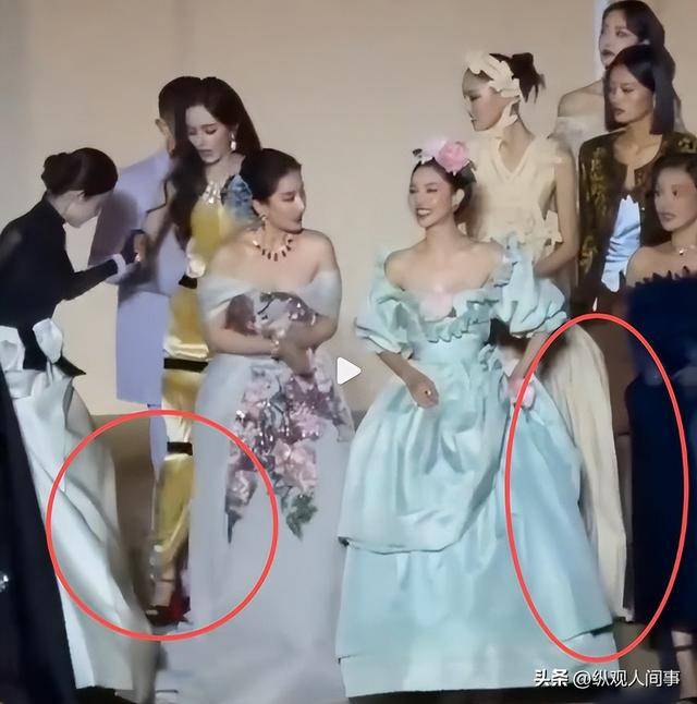 而因为被挤的不行,刘亦菲的裙子还被活动总裁给踩了。