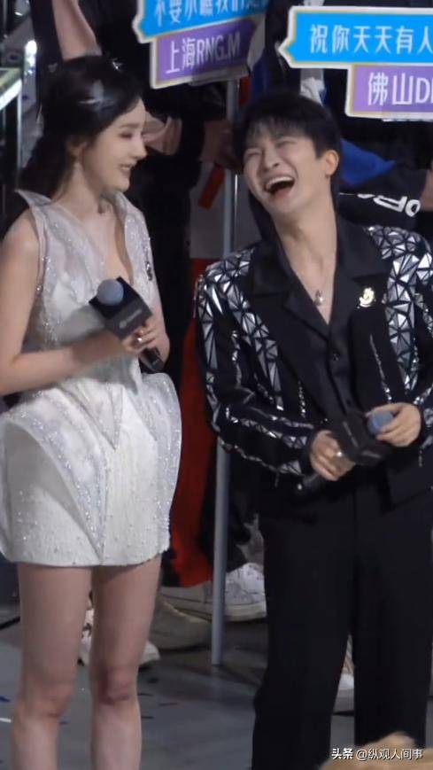 只见周深张着大嘴朝向杨幂,杨幂也笑的非常开心,俩人聊的很是投机。