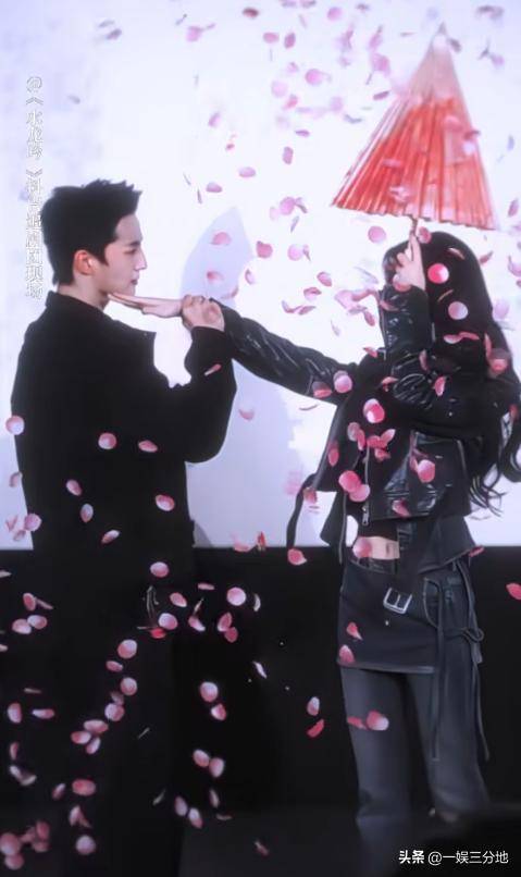 这一次在剧宣现场,两人也是靠着雨伞和花瓣,直接来了以一个初见复刻。