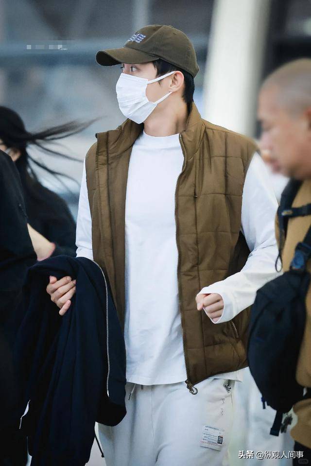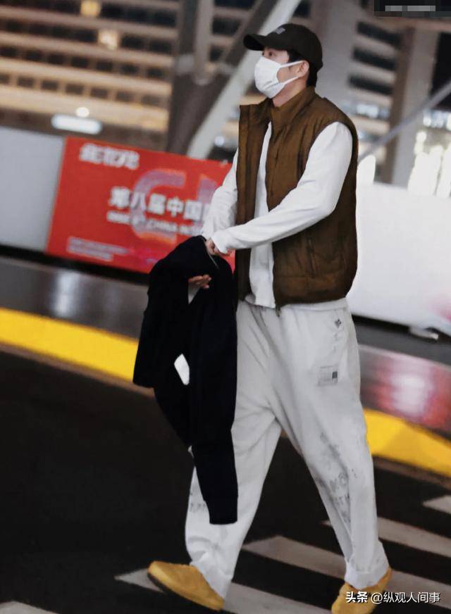 当天,他身穿白色T恤,外搭棕色马甲,戴着口罩,打扮的还算是中规中矩,但如果不是这张脸撑着,估计秒变街边大爷。