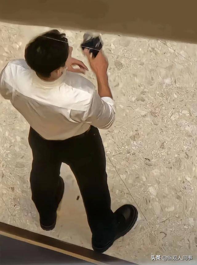 他将外套搭在肩膀上,眼睛一边看着前方,手里一边掏出手机,举止非常轻松自然。