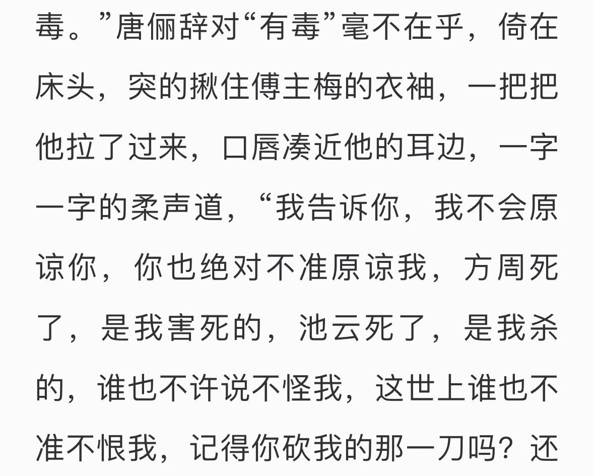 唐俪辞也有明显的偏执、疯批属性。原著中,当他面临过多压力和创伤时,呈现出了一种复杂、矛盾甚至病态、扭曲的精神状态——脸色一沉随即又笑意如花;神态妩媚又充满煞气;一边大笑一边描述自己如何杀死师兄……