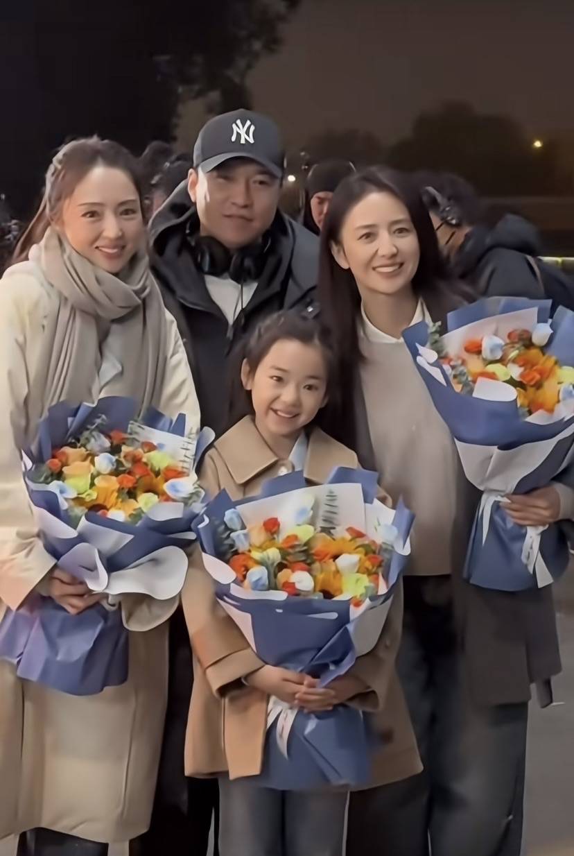跟在董璇身后的,还有她的爸爸妈妈。其实平日里董璇工作忙,接送酒窝上学的事情,都是外公外婆在负责。
