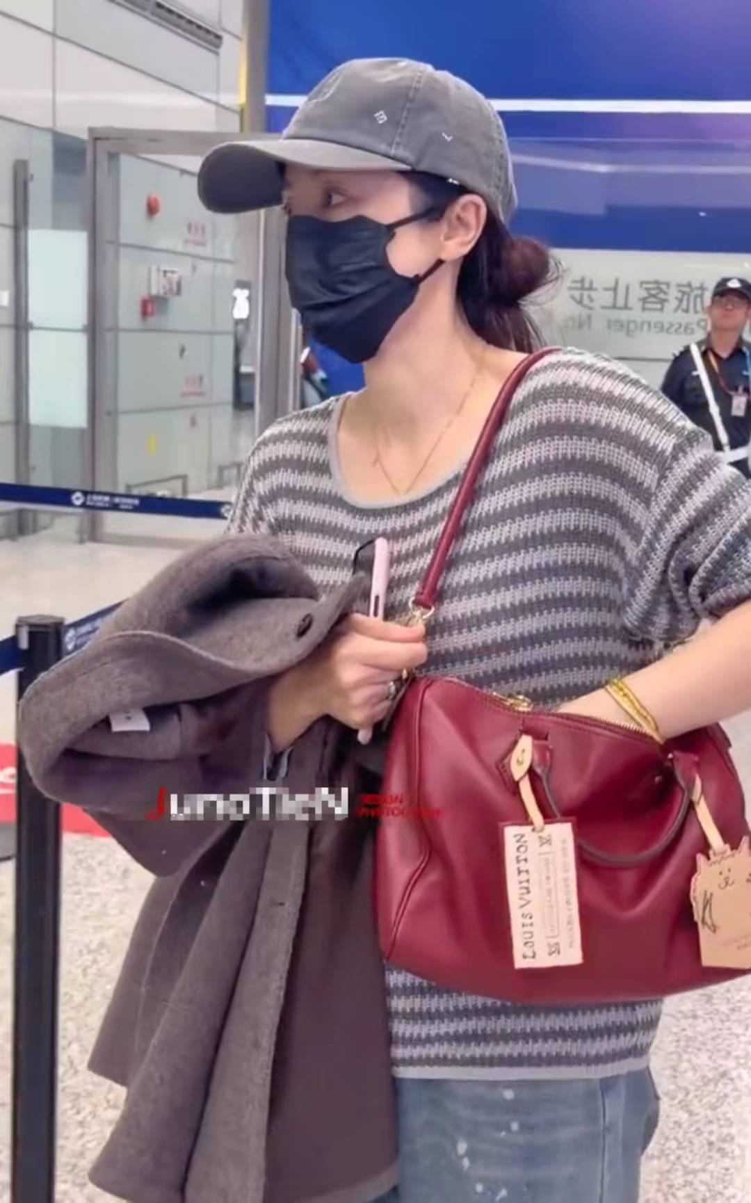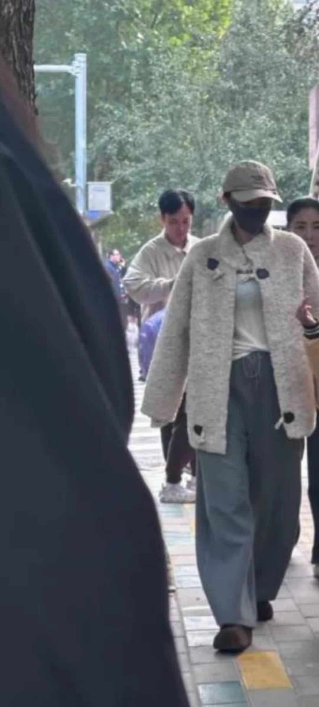 董璇偶尔接送酒窝,穿轻薄的大打底衫,高腰阔腿裤,外套没有系扣子,这个画面被“大肚子”抢镜了。
