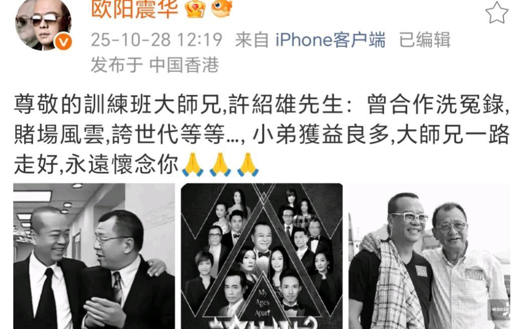 10月28号这一天,真是让人心里挺不好受的,香港娱乐圈一下子传来了两条坏消息,都是关于告别的,第一个是许绍雄,大家都很熟的面孔了,那个笑眯眯的,演了很多经典配角的,他因为癌症,最后