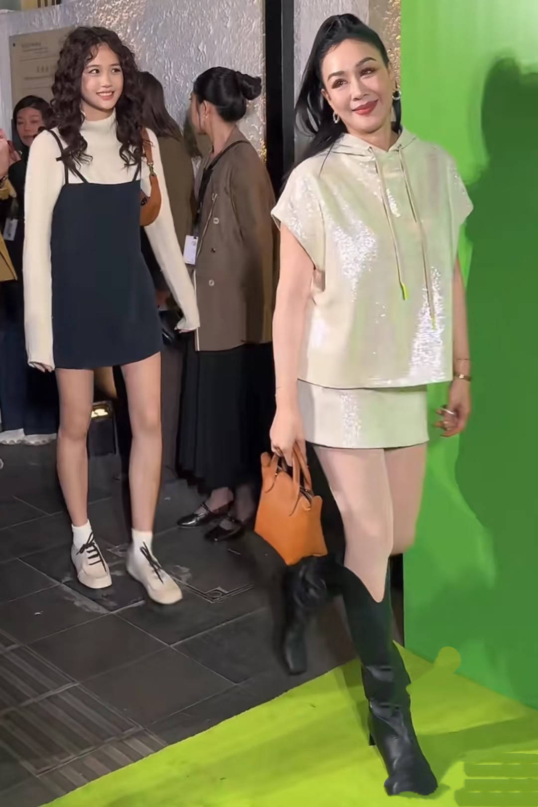 她带着两个女儿一起走红毯,还和刘亦菲合影了。两个女儿气质不同,二女儿更加高冷、适合超模路线。考拉长相甜美,感觉戏路会更宽一些。