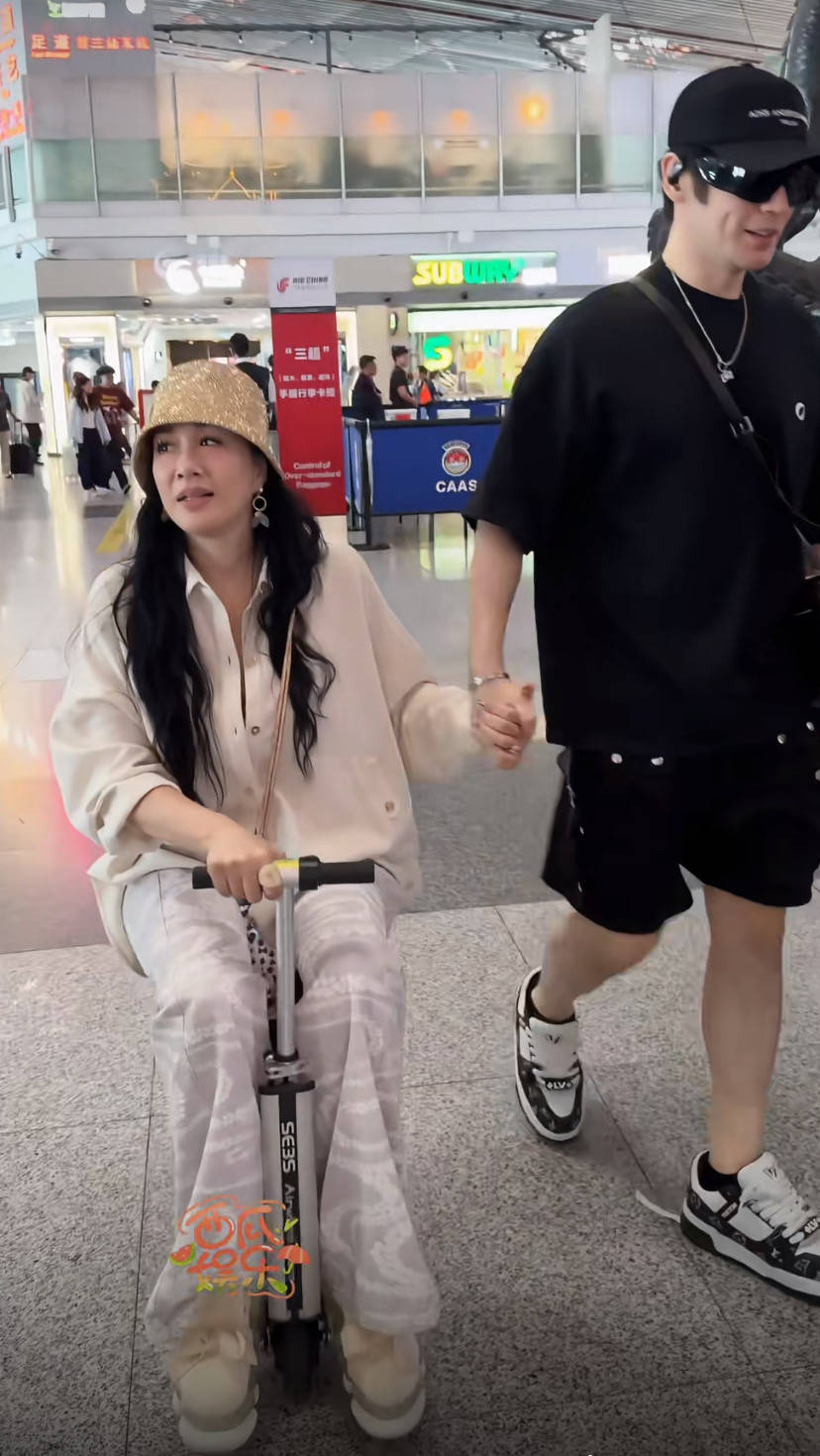 别看这俩也是老夫老妻了,现身机场永远都是手牵手的幸福模样。钟丽缇骑在电动行李箱上,张伦硕拉着她的手满脸笑意,张伦硕就是他的方向盘!