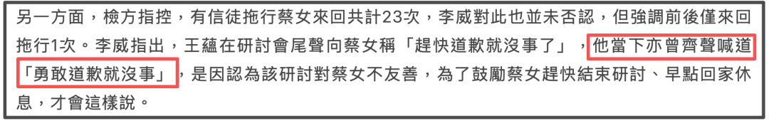 值得一提的是,就在半个月前,其丈夫李威作为污点证人出庭做无罪答辩时,还提到了当时主犯要死者赶紧道歉,而自己也在一旁附和说勇敢道歉就没事了,林育玟说当时不知道是谁说的,结果李威早就自曝了,这两口子是不是没对好口供啊?