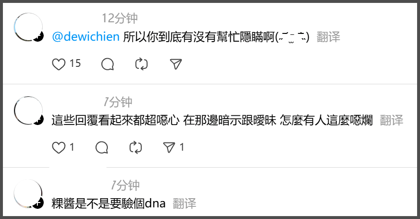 就在双方各执一词时,范姜彦丰身边不少朋友已经开始通过网络爆料。台艺人成语荞火速给他留言:早就听说这件事,真是辛苦你了。有人追问真实性,她也给出肯定答复。