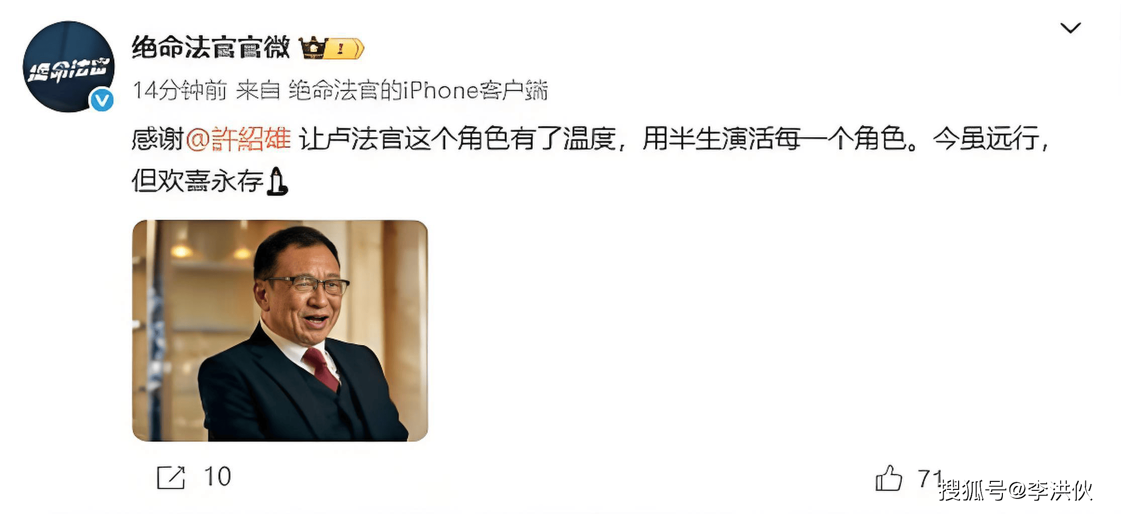 而今年,许绍雄出演的电视剧《绝命法官》,也正在热播。只不过这部剧的成绩,许绍雄却再也看不到了。