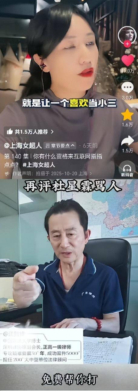 她说自己因为在2016年称呼杜星霖为小三,被她起诉后,自己竟然败了官司。