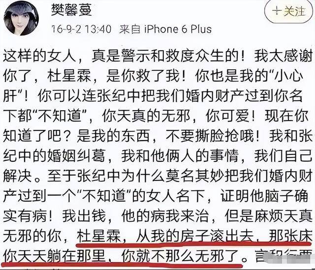 最近樊馨蔓再度发声,甩出当初张纪中转移财产的“铁证”。